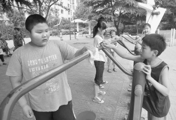 7月21日,潍城区城关街道长胜社区广场花园里,小学生在擦洗健身器材。为引导青少年过一个健康、愉快、有意义的暑假,该社区开展“争做文明小市民”活动,得到孩子和家长的积极响应,20多名孩子在社区院内清理小广告、捡拾白色垃圾、擦洗公共设施,通过自己的双手为构建绿色家园、文明社区贡献力量。 记者王晓光摄