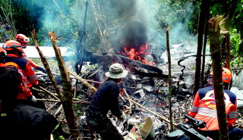 7月24日,泰国陆军一架贝尔212型直升机在泰缅边境地区坠落,导致3人死亡,1人受伤。这是自16日以来泰国军方坠毁的第三架直升机。 (新华社发)