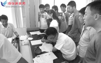 为做好退役士兵安置工作,维护退役士兵合法权益,近日,高密市对未考取事业单位、又不到企业安置的退役士兵,本着个人申请、本人自愿的原则,进行自谋职业安置工作,并对其发放自谋职业金。图为申请自谋职业金现场。 王发成 陶源摄