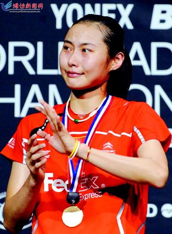 | 8月14日,2011羽毛球世锦赛在伦敦结束了女单决赛的争夺,王仪涵在比赛中顶住压力,21:15,21:10力克中华台北郑韶婕,首次获得世锦赛女单冠军。 (新华社发) |