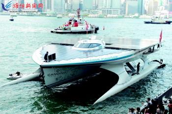 8月15日,全太阳能动力双体船停靠香港维多利亚港湾。全太阳能动力双体船抵达香港海港城海运大厦,作为该太阳能船只首次环球航行其中一站。据悉,该双体船长31米、高7.5米,重95吨,配备536平方米的太阳能电池板,可完全由太阳能供电,毋须用传统燃料发动。双体船访港期间,将与香港科技大学举办多项环保活动,鼓励公众投入绿色生活。该艘双体船于2010年9月从法国南部出发,展开环球航行。抵达香港前,该船已横渡大西洋及太平洋,访问了美国、墨西哥、巴拿马、哥伦比亚、厄瓜多尔、澳大利亚及菲律宾等国家。 据新华网