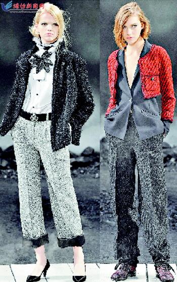 没有衬里的轻柔外套、精工缝制的袖子、丝质上衣、金色链条、围裹式双片裙、让双手空出的菱格纹肩背包、使脚型显得小巧的黑头平底双色鞋、外套上的珠宝纽扣和服装前面一连串的装饰纽扣等等,这就是“香奈儿风格”,它证明了:“怎么穿衣服”比“穿什么衣服”更重要。事实上,随着时代并进的实用性才是香奈儿风格延续的最主要原因。 外套 经典的开始 早在上世纪20年代前,香奈儿女士即以Jersey平织布料设计了第一款香奈儿外套。1954年,香奈儿女士以她最钟爱的斜纹软呢为材质,宣示对于时装的独到见解。外套被卸除了里布与垫肩;外套的正面按着布料直挺的纹理来车缝,不在胸线的部位刻意抓褶缝合;套装的袖子接缝在肩部的最高点,好强化舒展双臂的自由性;两边的长袖设计会做出些微弯度,并且里面多加一块布,以符合手肘自然的曲直与活动空间。为求完美的垂坠度,外套的下摆都会缝上精致的铜质链条。编结滚边成功凸显了外套的线条,类似的细节重复出现在口袋边缘及袖口,营造活泼且充满设计质感的视觉焦点。不论是静静地坐着、在车中、在街上行走或是举手投足间,优雅和精致都会自然流露出来。