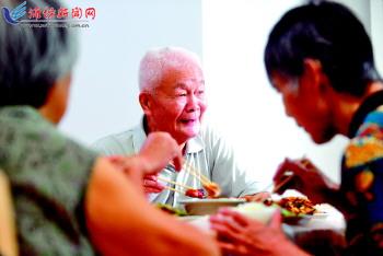 8月30日,85岁的吴静秋老人(中)在服务站吃午餐。