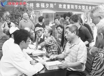 | ▲近日,市人民医院大夫在为奎文区东关街道苇湾社区老年居民进行健康查体和病情咨询。 记者王立军摄 |