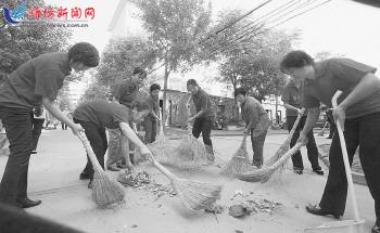 近日,在奎文区广文街道松鹤园社区,志愿者正在清理落叶。为了维护城市环境,该社区30多名居民组成“爱我中华”志愿队,分组轮流打扫监督社区及周边卫生环境,为争创人居环境奖助力。 记者俞珂摄