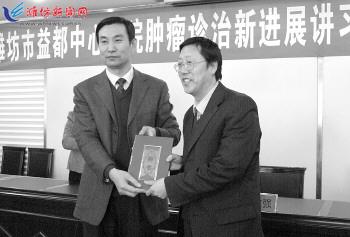 | 图为益都中心医院马胜院长向英国曼彻斯特大学生命科学院郭宝强教授颁发客座教授的聘书。 |