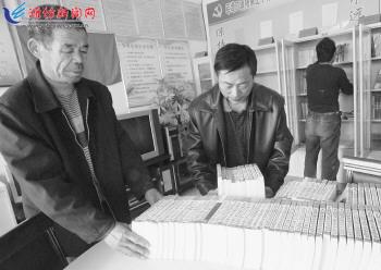 10月23日,潍城区军埠口综合项目区杨家庄村村民在农家书屋翻阅图书。近年来,潍城区加快基层公共文化服务网络建设,在全区所有行政村都建起了农家书屋,图书、报刊、电子音像制品应有尽有,满足了农村群众日益增长的精神文化需求,让他们共享到文化发展的成果。 记者王晓光摄