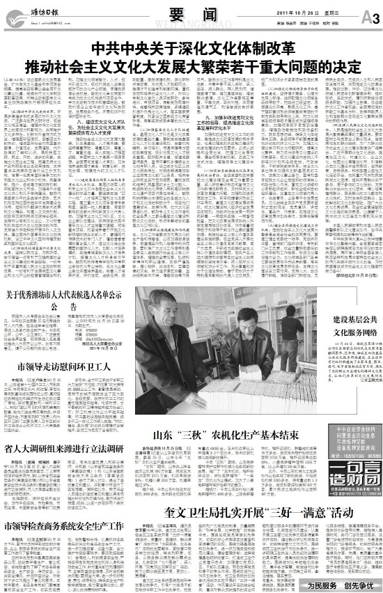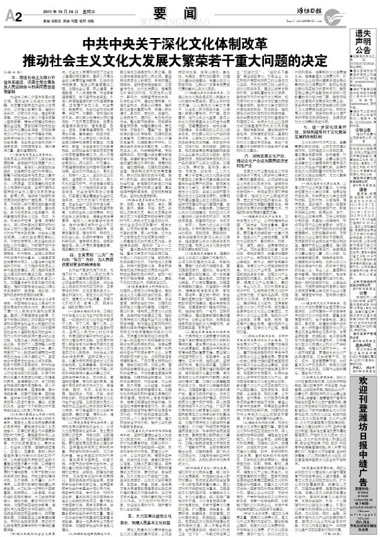 中共中央关于深化文化体制改革推动社会主义文化大发展大繁荣若干重大问题的决定