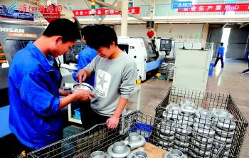 潍坊富源增压器有限公司立足民族品牌,坚持自主创新,致力于涡轮增压器产品的技术进步,开发、生产了压气机叶轮25大系列、300多个品种的增压器产品,成为国内产品覆盖面最宽、应用范围最广的涡轮增压器厂家。图为生产车间一角。 记者苏保温摄
