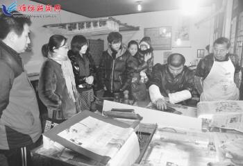 1月1日,游客在杨家埠大观园参观年画制作。元旦期间,寒亭区杨家埠大观园内各地游客纷至沓来,为让广大游客更深刻地感受杨家埠悠久的历史,丰厚的文化底蕴,大观园内专门设立了年画、风筝制作体验区,让海外宾朋自己动手参与印制年画、轧制风筝等,充满地方民俗特色的项目给游客留下了难忘的印象。 记者曹亮华摄