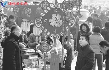 图1:1月20日,潍城区乐埠山生态经济发展区农民在年集上选购春节饰品。农历龙年一天天临近,我市城乡的农家大集上年味越来越浓了,琳琅满目的年货,令人目不暇接,人们忙着赶年集、备年货、迎新春,脸上洋溢着幸福与喜悦。 记者王晓光摄 图2:春节临近,为了增添喜庆的节日气氛,采购年货的人们也没有忘了买副春联,红红火火过大年。图为坊子区坊安街道赶年集的群众正在选购春联。 记者王晓光 通讯员刘华强 陈文摄