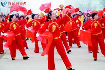 2月6日,坊子区首届元宵灯谜会暨狂欢大巡游活动在该区政府广场举行。来自全区的30支文艺表演队伍、45辆花车和1200余名演出人员,为现场10000余名观众献上了一场精彩演出。狮舞龙腾的热烈场面,展示出该区干部群众稳增长、调结构、惠民生、促和谐的良好精神风貌。图为文艺表演者在表演节目《红扇欢歌》。 记者曹亮华 通讯员于明鹏 宁晓红摄