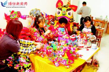 2月21日,寒亭区朱里街道民间工艺美术师在制作“布老虎”。 寒亭区的手工布玩具以造型简练、装饰性强、色彩明快和浓郁的民间艺术风格受到市场欢迎,“布老虎”订单纷沓而来,当地有关部门组织有制作经验和手艺的村民赶制,以满足市场需求。 记者王立军摄