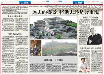 据孙立荣老人回忆,组织老艺人归队,当时也有的老艺人本人对归队有顾虑,觉得已有了固定单位,有了一份工作,虽然不是那么理想,但总是有碗饭吃了,怕归队后再吃不上饭。 裱画艺人高崇禧,家住南沟街,在火车站搬运队拉地排子车。他裱画很好。1962年孙立荣去他家访问,高崇禧说,拉地排子车,多劳多得,少劳少得,不劳不得,根据劳动强度补点粮票,维持生活不成问题。孙立荣与他商议,请他到工艺美术设计研究室裱画。开始他犹豫不定,一怕工资少,二怕粮食不够吃。孙立荣动情地说,你现在已经50岁了,再过三年五年你还能拉车吗?到研究室,把你的老手艺发挥出来,固定工资不低于你现在的平均工资,在室内工作,夏天有电扇,冬天有火炉,再带上两个徒弟,你指导着他们干,让咱这一行后继有人,这有多好? 经过孙立荣三番五次地劝说,他终于动了心,没出一个星期,就来研究室裱画了,他觉得安排得很好,工作很积极。 □本刊记者 骆雁峰 盛景重现,可以期待 在十笏园商业文化街区项目的西北部,有两幢楼特别醒目。这两幢楼,一幢1.15万平米,另一幢8000多平米,这近两万平米的空间,将留给最具潍坊特色的文化品牌。据十笏园商业文化街区项目总监戴军铭介绍,两幢楼中,8000平米的那幢,要做为文展会永不落幕的分会场;而1.15万平米的那幢,则要打造成潍坊民俗特色的产品和手艺的集中展示平台。 “风筝、年画、剪纸、核雕以及红木嵌银等,这些很具潍坊特色的民间艺术,我们都已经开始密切接洽。”戴军铭说,十笏园商业文化街区当中,这一部分要重点打造成潍坊特色民间工艺品的一站式的展销平台。 “我们会将潍坊最精华的部分,在这里展现出来。”戴军铭告诉记者,这些产品从做工到用料都会走高端的路子。他告诉记者,这里还会定期请一些潍坊的老艺人来这里现场展示,同时各门店当中,艺人的手工展示,也是常态化地每天进行,可与游客和顾客互动交流。 在采访中,戴军铭还向记者表示,这里不但是一个展示本地的特色产品的平台,还会成为一个对外交流的平台,会请一些省内外甚至国外的艺人,来到这里献艺表演,促进相互之间的交流与借鉴。 据了解,在街区的这两幢楼里,潍坊几乎所有的国家和省级的非遗保护项目,都可以在这里看到,通过十笏园这一平台,向全省全国全世界的人,展示潍坊的特有风采和魅力。“有一句话叫民族的才是世界的,我们要做的,就是充分抓住这一点,突显这一点。”戴军铭告诉记者,等到两幢楼完工之后,这一设想将很快成真。 3月27日下午,记者来到十笏园商业文化街区采访。在施工现场,戴军铭指着即将完工的两幢楼说,年底之前十笏园工程便全部结束,到时候,市民们便可以感受到整个十笏园商业文化街区的魅力,而这当中,这两幢楼的特色风采也将更为引人注目。 重现潍坊工艺美术盛景,成为十笏园商业文化街区中一个重要的目标。或许在这里人们更能够读懂潍坊。记者发现,在塔吊起落与脚手架的工人们的忙碌当中,过往的盛景,正一点点呈现出来。 两万平米的展厅,已经足够宏大。但它能否真实再现潍坊独特的工艺美术盛景呢?这是一道问答题,答案即将在几个月后揭晓。我们有足够的耐心去等这几个月,也应该有足够的信心,去期待这几个月。 □本刊记者 骆雁峰