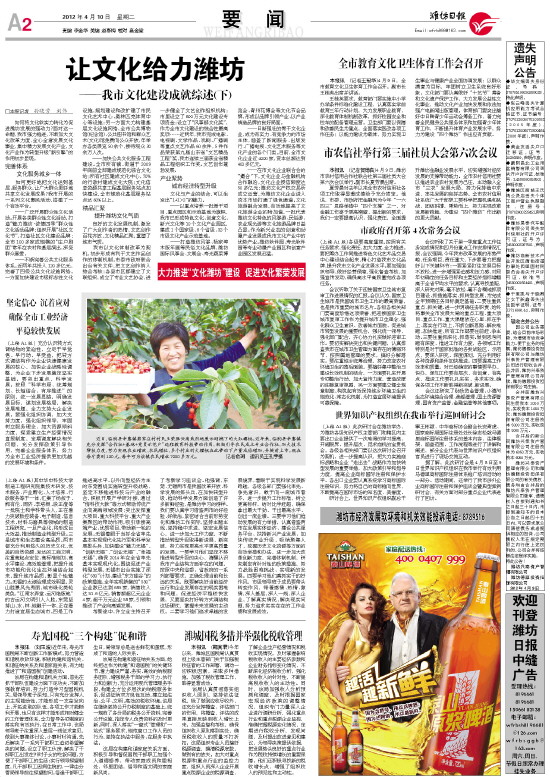 地址:潍坊市奎文区文化路500号 邮编:261031 电话:0536-8196033