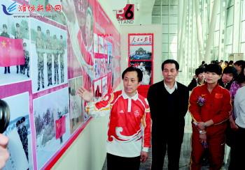 4月15日,张大功在向来宾介绍展品。 当日,为迎接伦敦奥运会倒计时100天,我市举行“奥运志愿者张大功情系奥运环球之旅系列展暨世界奥林匹克书法长卷展”,展出了张大功收藏的奥运火炬、吉祥物、会徽、奥运邮品、油画、书画长卷、篆刻、奥运日记、《相约伦敦祝福世界迎奥运行旅图》及图片等共计3000余件。 记者王立军摄