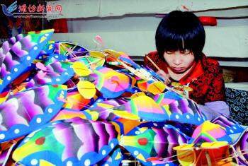 近日,在杨家埠民俗艺术大观园,工人们正在精心制作风筝。 第29届潍坊国际风筝会即将举行,我市正在紧张准备,积极备战风筝会。据了解,今年风筝会包括风筝、文化、旅游、招商四大板块10项主题活动,更有万人风筝大放飞、“百龙闹春”龙头蜈蚣风筝放飞表演等新增亮点项目精彩呈现,届时将给市民带来全方位的文化艺术享受。 记者俞珂摄