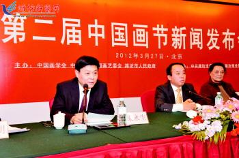 3月27日,“第二届中国画节”新闻发布会在北京广电国际酒店举行,引起新闻媒体和社会各界广泛关注,新华社、人民日报、光明日报、中央人民广播电台、中央电视台等50多家媒体近百名记者参加发布会。市委常委、宣传部长初宝杰出席并致辞,潍坊报业集团党委书记、董事长,潍坊日报社社长来永生(左一)介绍了第二届中国画节的筹备情况。