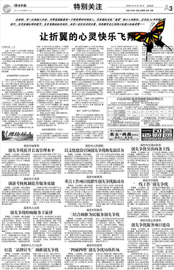 第29届潍坊国际风筝会刚刚结束,潍坊风筝的靓姿又在山西朔州上空飘起。应朔州市邀请,潍坊工艺美术研究所召集20多位风筝放飞专家,携带10000余只风筝,专程赶赴山西举办朔州市首届风筝文化艺术节,受到当地市民欢迎。朔州市首届风筝文化艺术节4月29日开幕,举办至5月10日。 据潍坊工艺美术研究所所长丁传信介绍,此次举办的朔州首届风筝艺术节,不管是风筝的种类档次,还是放飞人员的水平和级别,都代表世界最高水准。朔州当地相关部门已表示,明年五一期间还将联合潍坊举办第二届风筝文化艺术节。 通讯员 刘平
