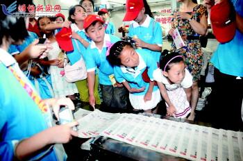 5月27日,《潍坊日报》小记者兴致勃勃地参观了潍坊报业集团印务公司、潍坊新闻网等部门,亲身体验并结合所学理论知识,进一步了解新闻采编、印刷、发布等各项工作流程。图为潍坊日报小记者在潍坊报业集团印务有限公司看到我市一流的印刷生产流水线,目睹折叠整齐的报纸快速输出。 记者田源 郑杨 王淑媛摄