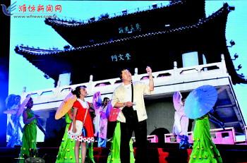 6月10日,在城区风筝广场,演员们正在表演节目。为进一步加快文化建设,增强群众幸福感,奎文区东关街道举办以“传统与时尚交融发展 文化与经济共建和谐”为主题的首届文化艺术节开幕式晚会。艺术节开幕后,将相继开展包括“DV晒幸福”评选、“翰墨书香”书画名人笔会、“电影进社区”等4大板块共10个文化主题活动。 记者王晓光 俞珂摄