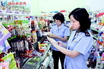 潍城区将食品安全监管作为做好国家卫生城市复审的重点工作之一,坚持不懈加强检查整治,对检查发现的食品违法经营行为进行严厉查处。图为6月11日,潍城工商分局执法人员检查食品商店。目前,该局已检查相关业户800余户,责令现场整改有关问题120余个。 王崇福 王明武摄