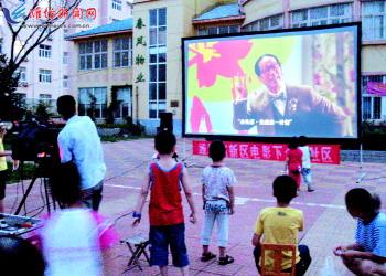7月6日晚,高新区福海花园的居民在小区广场上观看电影《家有喜事》。进入夏季以来,高新区开展了“电影下乡进社区”活动,为市民免费放映电影,让市民坐在家门口赏大片。 记者王晓光摄