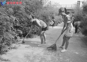 7月18日,奎文区北苑街道则尔庄社区青少年文明创建志愿者在白浪河边清理垃圾。暑假期间,该社区成立了青少年文明志愿者服务队,得到中小学生的积极响应,小志愿者们通过参加社区的保洁、护绿等志愿服务,为我市文明城市创建工作贡献了自己的力量。 记者王晓光摄