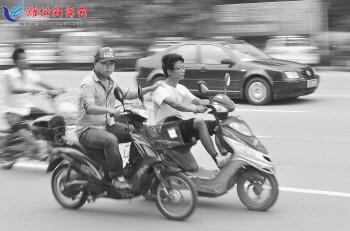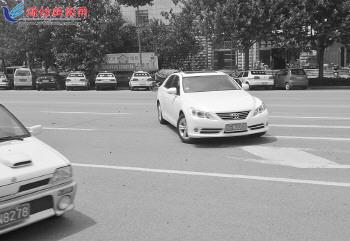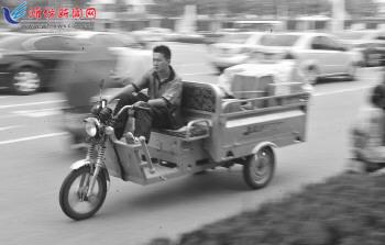 图① 在城区新华路上,两位骑电动车的小伙子“勾肩搭背”快速行驶。 图② 在城区健康街上,一辆白色汽车(中)自西向东行驶到新华路路口时遇到红灯,该车先右转弯拐进新华路直行,再右转弯回到健康街,然后向东急驶而去。这一系列动作只是为了躲避等红灯的时间。 图③ 在新华路南端拥挤的车流中,一辆三轮车急速逆行而来,让人着实替他担忧。 本报记者摄