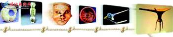 | 上图从左至右依次为:距今5000多年的凌家滩遗址玉龙、玉人,距今5000多年的牛河梁女神庙遗址泥塑女神头像,距今4500年左右的陶寺遗址彩绘龙纹陶盘、骨杆玉簪,夏代后期二里头文化青铜酒器。 制图:蔡华伟