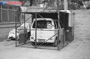 8月9日,在北关街道陈家油坊社区,自搭车库占用公共场所,影响市容。 本报记者