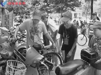 近日,潍城区城关街道颐园社区文明规范督导队的小队员在整理乱放的自行车。暑假期间,该社区的中小学生积极加入社区文明规范督导队,他们劝阻不文明行为、清理社区卫生,为创建文明城市贡献一份力量。 记者王晓光摄