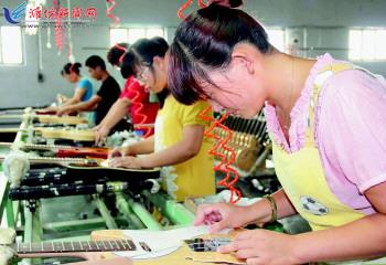 近日,昌乐县鄌郚镇明宇乐器公司的工人们正在组装吉他。目前,鄌郚镇乐器及配件生产企业达到83家,从业人员1.5万人,年产值36亿元,当地群众凭借勤劳智慧的双手赢得了“中国电声乐器产业基地”的国字号荣誉。 记者王晓光 通讯员王子柱 唐宗武摄