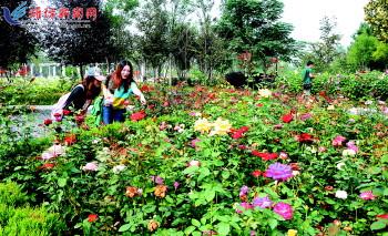 近日,在昌邑温热带植物展示园,人们正在观赏盛开的鲜花。中秋、国庆双节临近,我市各地街头、公共场所陆续布置起颜色各异、形式多样的鲜花和喜庆的标志,将城市装扮一新,迎接双节到来。 记者俞珂摄