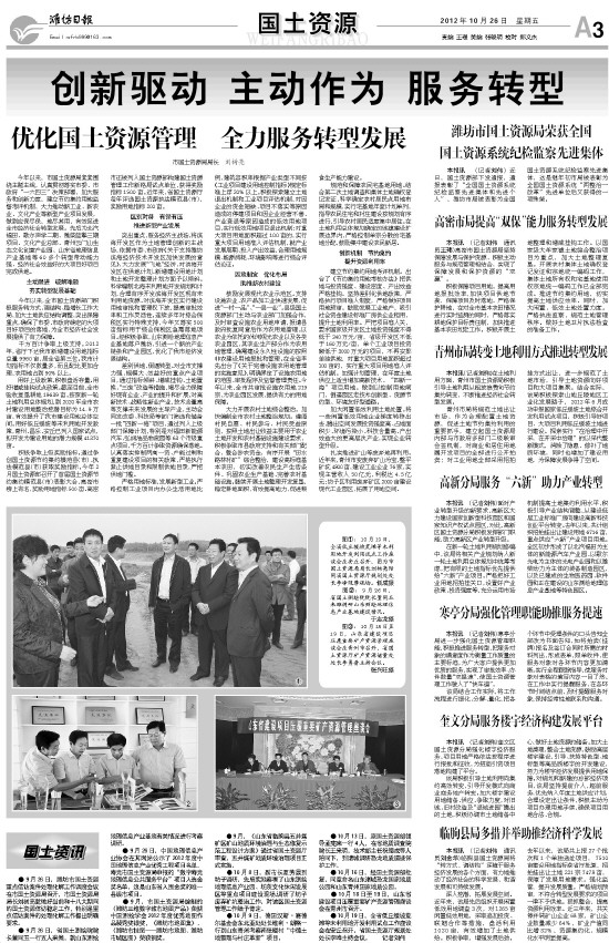 金秋时节,潍坊大地一派收获景象。 2009年11月和2011年1月,国务院先后批复《黄河三角洲高效生态经济区发展规划》和《山东半岛蓝色经济区发展规划》,成为国家区域发展战略的重要组成部分。规划批复以来,作为“蓝黄”交汇融合的核心城市和重点区域,我市认真贯彻中央和省委、省政府的决策部署,深入实施“蓝黄”融合发展战略,充分发挥“两区”叠加优势,把发展海洋经济和高效生态经济作为推动全市经济社会跨越发展的重中之重,坚持高点定位、重点突破,创新驱动、快速融入,“两区”建设成为我市科学发展的重大机遇和强大引擎。今年前三季度,全市实现地区生产总值2946.41亿元,按可比价格计算,比上年同期增长10.5%,增速在今年首次超过10%,高于全国2.8个百分点,高于全省0.8个百分点。 准定位:立足全局,狠抓关键 谋一域先谋全局。规划就是要立足全局,狠抓关键。我市立足实际,制定了《潍坊市蓝色经济区发展规划》。 从全局高度科学谋划发展定位。发挥联接主体区和联动区的枢纽作用,坚持陆海统筹、区域统筹、产业统筹,全面转向转方式、调结构的要求,转向蓝色、高端,转向高效、生态,加快建设“蓝黄”融合发展的示范区和渤海南岸独具魅力的现代化滨海新城,建设海洋特色化工基地、海洋装备制造基地、海洋新兴产业基地、海洋物流基地、海洋科教创新基地,努力打造山东半岛蓝色经济区的重要增长极。 以全新视角规划总体战略布局。确定了蓝色经济区建设“一带、一体、两翼、多点”的总体布局。“一带”,就是把北部滨海地区作为全市海洋经济发展的隆起带和核心带动带;“一体”,就是以潍坊中心城区半小时经济圈为主体,重点发展高端产业;“两翼”,就是以诸城和高密为东翼,以青州和临朐为西翼,加强与青岛、日照和内陆地区的联系互动;“多点”,即以各开发区和重点园区多点支撑,加快向海洋产业、高端产业转型。 配套编制“蓝黄”战略各专项规划。编制完成了《黄河三角洲高效生态经济区生态环境控制功能区划》,科学确定了各生态功能区的功能定位和产业发展重点;编制了《潍坊滨海海洋经济新区总体规划》和《潍坊滨海中外产业合作园规划》等区域规划。 抓重点:滨海带动,全域提升 北部2657平方公里的沿海地区是“蓝黄”交汇融合的重要区域,同时也是承载全市优质增量投入、推动科学发展、加快转方式调结构的最大空间。长期以来,我市大力实施北部沿海开发战略,与中央和省里的要求高度契合,奠定了良好的发展基础,在蓝黄“两区”建设中赢得了先机。 潍坊滨海海洋经济新区和潍坊滨海中外合作园区分别成为山东半岛蓝色经济区重点建设的“三区三园”之一。我市以此为契机,坚持高起点提升发展定位,高速度加快产业聚集,高标准推进新城建设,高水平强化支撑条件,突出抓好港口、产业、新城、生态四个战略支撑点,努力把滨海地区的资源和空间优势转化为经济优势,全力打造蓝色经济发展的主战区、新兴产业和高端产业的聚集区、黄河三角洲开发的先行区、全市科学发展的示范区,推动潍坊加快步入滨海发展的新时代。 在工作推进上,重点开发以国家级潍坊滨海经济技术开发区为中心,以寿光滨海经济开发区、昌邑滨海经济开发区为两翼的三大产业发展板块。目前,北部滨海地区已累计完成投入1577亿元,完成基础设施配套436平方公里。 特别是滨海新城建设快速推进。新开工各类工程170多项,累计完成投入200多亿元。科教创新区有25所院校确定入驻,16所动工建设,海事职业学院建成招生,创业大厦建成投用,商业步行街等公建设施加快建设;中央商务区完成起步区配套,综合商务中心、金融中心等动工建设;旅游度假区完成10平方公里吹填,实施了风筝冲浪基地、人工沙滩、人工岛吹填等工程,滨海地区形象品质进一步提升。 增优势:完善载体,培植集群 我市把重点园区作为培强产业主阵地,加速企业聚集,促进上下游配套,实现产业集群式发展。 高新区内光电园、软件园、生物医药园、新兴产业园等园区加快建设,新兴高端产业发展“63513”工程被省政府确定为全省示范工程,已经获批建设国家创新型科技园区和国家知识产权试点园区,正在积极争创国家促进科技和金融结合试点园区、国家“新三板”试点园区、省可持续发展实验区。 滨海区升级为国家级经济技术开发区,规划建设了150平方公里的滨海水城、160平方公里的先进制造业产业园、70平方公里的临港产业园、50平方公里的绿色能源产业园和80平方公里的海港物流园,被确定为国家科技兴贸创新基地、国家生态工业示范园区。 综合保税区获批设立,成为全国第14家综合保税区,已引进项目29个,总投资120亿元,全部达产后,年可实现进出口额50多亿美元。 其他省级开发区和各类园区建设也齐头并进、异彩纷呈,都在找准定位、快速融入,加快向高新技术和蓝色经济转型升级。 扩投入:提升项目,招大引强 我市把项目建设作为增加科学投入的重中之重,围绕加快构建现代海洋产业体系,把打造特色产业基地作为加速产业结构调整、促进新兴产业集聚发展的重要载体,重点培育电子信息、新能源、海洋化工、装备制造、高效生态等特色产业,促进海洋优势产业链条式、集群化发展,目前已建成国家半导体照明高新技术产业化基地和动力机械、电声器件、潍