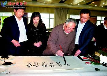 10月31日,奎文区“喜庆十八大·广文印象”诗书画影系列活动启动仪式在奎文区广文街道举办。市区有关领导与应邀的我市作家、书画家、摄影家与新闻媒体记者等60余人参加。 据悉,本次诗书画影系列活动,意在以“广文印象·品质广文”为主题,通过颂广文、写广文、画广文、拍广文、演广文等形式,全面展示广文新貌,提升“广文印象”文化品牌建设。系列活动分别为:开展百米长卷绘广文;“听、看、游、感”百名艺术家广文大型采风;“喜庆十八大·广文印象”笔会;“喜庆十八大·广文印象”颂诗会;“广文印象”诗书画影展。 启动当天,应邀的我市知名书画家任柏榴、蒋华亭、张伟平等分别在书画笔会上创作数十幅书画作品作为祝贺。 图为我市80岁著名书法家蒋华亭先生在笔会现场创作书法作品。 记者孟庆龙文/图