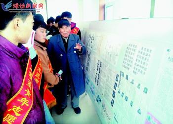 12月4日,全国义务普法先进个人吴文彬在给大学生做普法宣传。当日,由热心普法宣传数十载的老人吴文彬举办的“义务普法宣传展”在颐年园老年公寓举行,老人在各界的帮助下,制作了12块普法宣传展板,用文字、图片、漫画等形式宣传刑法、消防法、婚姻法等法律知识,号召人们学法、懂法、守法。 记者王立军摄