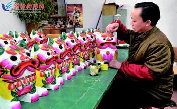 1月17日,高密市姜庄镇聂家庄村的泥塑艺人聂臣希正在赶制泥老虎。春节临近,高密泥塑迎来了销售旺季,聂家庄的50多家泥塑专业户都在加班生产。每逢节日,独具浓厚民间风味和乡土气息的高密泥塑在北京、上海、广州等国内各大城市热销。 记者王晓光 通讯员王翔摄