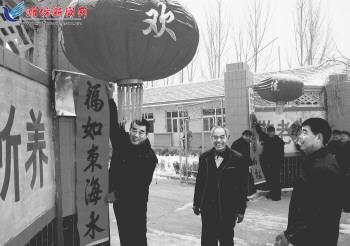 2月5日,经济开发区组织双杨街道志愿者在敬老院门口贴春联。当日,该街道的20余名志愿者走进敬老院慰问这里的73位老人,他们将敬老院里里外外打扫得干干净净,贴上春联挂起红灯笼,营造出喜气洋洋的节日氛围。 记者王晓光 通讯员王亭 孙晓亮摄