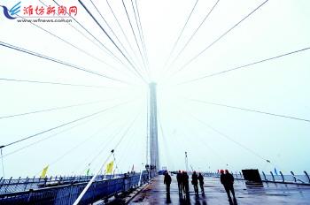 2月5日,世界上最长最宽的多塔斜拉桥——嘉绍跨海大桥实现全桥合龙贯通。嘉绍跨海大桥于2008年底动工,总投资139亿元,其中跨越杭州湾部分长约10公里,按高速公路标准建设,设计时速为100公里。嘉绍跨海大桥建成后,浙江绍兴到上海的车程将缩短近一半。(新华社发)