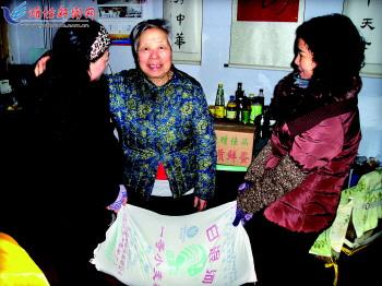 2月2日,幸福街社区的工作人员为烈属送上节日物资。春节前夕,奎文区潍州路街道幸福街社区来到驻辖区部队,走访慰问了老红军及部分红军遗属,为他们送去了面、鸡蛋等慰问品,老人们高兴地说:“春节快到了,谢谢你们,让我们这些老人真正感受到了社会大家庭的温暖。” 记者王立军摄