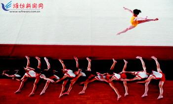 | 摄影师储永志拍摄的照片《热身》获得体育动作类单幅二等奖。这张照片说明为“2012年7月10日,在浙江省嘉兴市少体校体操训练馆内,一群体操小选手正在进行训前热身活动”。 |  |