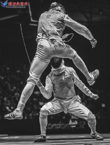 | 体育类组照二等奖。摄影师:Sergei Ilnitsky当地时间2012年7月31日,英国伦敦,伦敦奥运会男子个人花剑第16轮比赛,埃及选手Alaaeldin Abouelkassem(上)对阵德国选手Peter Joppich。 |  |