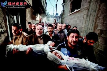| 2013荷赛年度图片。摄影师:Paul Hansen。巴勒斯坦孩子的葬礼 当地时间2012年11月20日,加沙,人们为两个巴勒斯坦孩子举行葬礼,两岁的Suhaib Hijazi和她三岁的哥哥Muhammad在以色列导弹袭击中身亡。 |  |