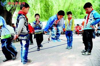 近日,“日报地产·公益行”走进青州山区刘井小学,这里的孩子们,身上无不散发着大自然的味道。那种快乐、纯真、向上的精神状态令人感动。图为孩子们在进行课间活动。 刘明顺摄