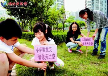 近日,在奎文区潍州路街道健康街社区,小学生们与社区工作人员一起安置警示牌。这是该社区发起的“文明创建人人有责”动员活动,号召广大社区居民积极行动起来,自觉爱护环境,从身边小事做起,争做文明市民。 记者曹亮华摄