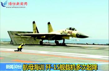 今年首次出海进行科研试验和训练的我国首艘航母辽宁舰,19日在渤海某海域进行了歼-15舰载战斗机多批次起降飞行训练。(据新华社)