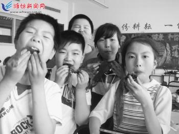 每逢传统节日,寿光市东关小学都会进行传统教育。端午节前后,该校小记者和同学们搜集端午节来历、风俗习惯,举办包粽子比赛。图为小记者终于吃上自己包的粽子,高兴地说比妈妈买的都香。他们还将粽子带回家,跟父母一起分享,表达自己的感恩之心。 程云红摄