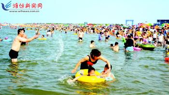 7月14日,市民在滨海旅游度假区人工沙滩浴场嬉水。当日正值周末,万余名游客在海边亲水、嬉水,尽享清凉。近年来,滨海区配套完善基础设施,做大做强旅游产业,大力推进特朗游艇码头、国际啤酒城、文化商旅中心、海洋主题公园等旅游项目建设,打造具有滨海特色的休闲旅游度假目的地,成为潍坊本地及周边济南、淄博、滨州等地市民纳凉亲水休闲的好去处。 记者孙树宝 通讯员王志顺摄
