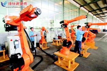7月31日,工作人员正在对工业机器人进行调试。日前,由坊子区潍坊帅克机械有限责任公司与香港科技大学、北京航空航天大学等共同自主研发的集焊接、切割、涂装等功能于一身的工业机器人,进入小批量生产阶段。该机器人在运动控制系统、谐波减速器、RV减速器等核心技术方面打破了西方国家的垄断。该机器人可广泛应用于汽车、船舶、家电、陶瓷等生产制造领域。 记者孙树宝 通讯员吕宣龙摄